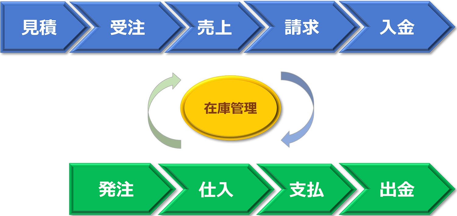 販売業務の管理に必要な、見積・受注・仕入・発注・売上・請求・入金・支払等の