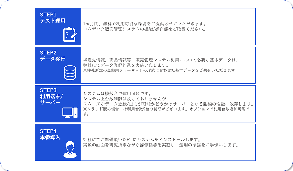 • 環境構築 ルール作りの支援はすべてリモート形式、もしくはコムデックへのご来訪にてご対応させて頂きます。
