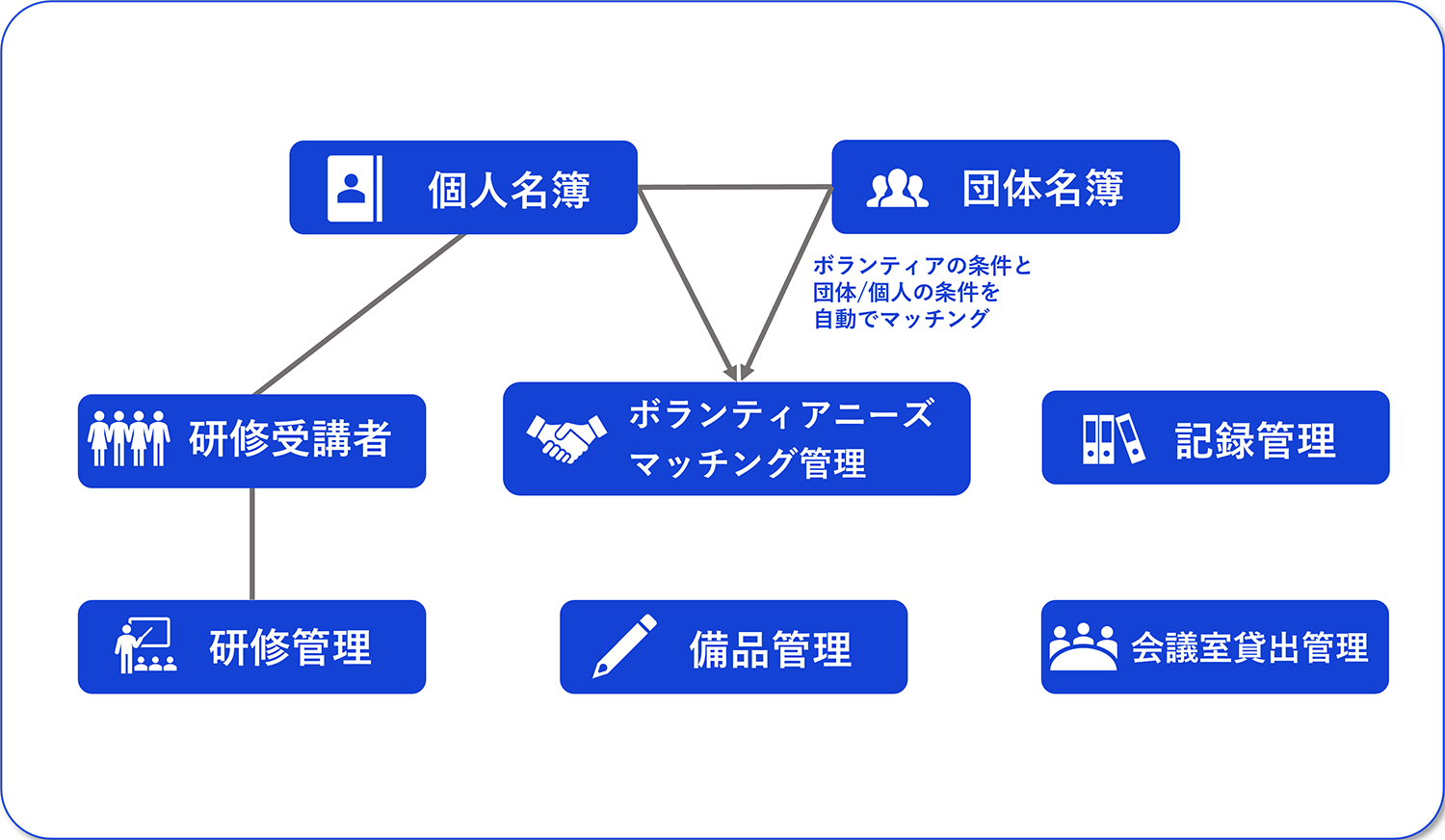 - 過去受講した研修やボランティアニーズのマッチング履歴を集約