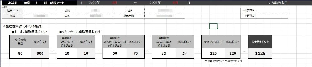 これで、売上を自動集計し、同時に人事評価ポイントも自動集計できる仕組みが完成しました。