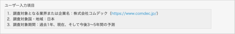 このプロンプトを使って、AIに外部環境調査を実行させた結果がこちらです。