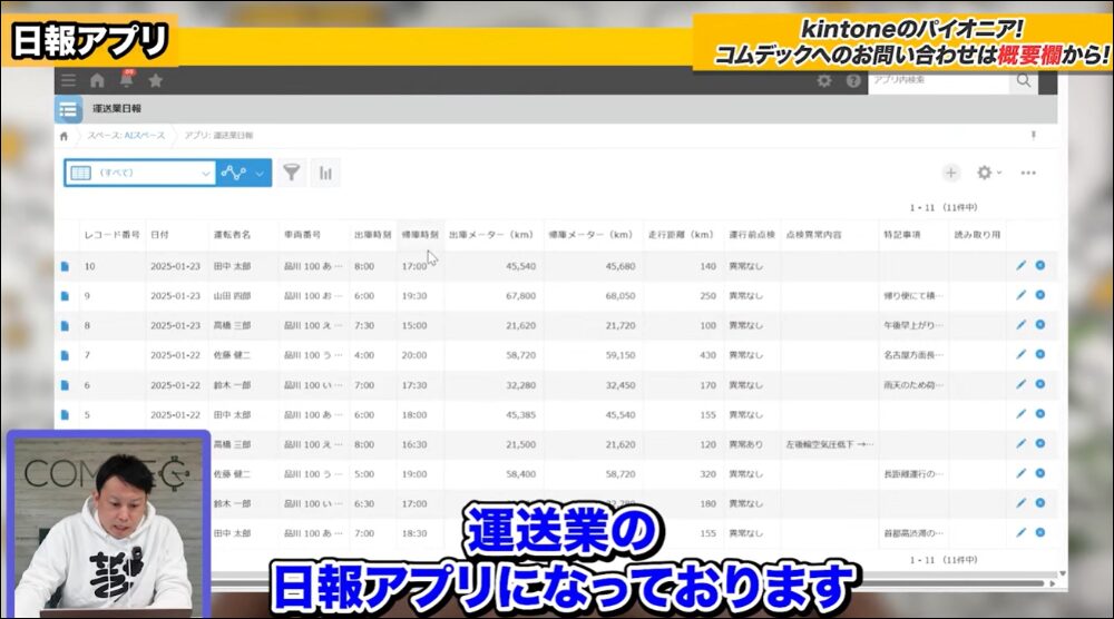 そのなかで日報アプリを使ってkintoneで効率的にデータを管理されているケースもありますが、ドライバーがkintoneに運転日報を入力できない場合もあり、手書きの日報を事務スタッフがkintoneに転記するという運用も見られます。