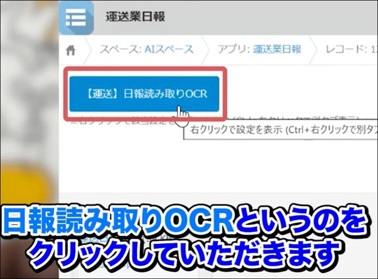 添付ファイルフィールドにPDFや写真を添付したら、「日報読み取りOCR」ボタンをクリックします。