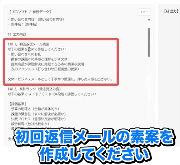 お客様の業種や企業規模を踏まえ、自社の導入実績や次のステップを明確に提案する文面が作成されます。