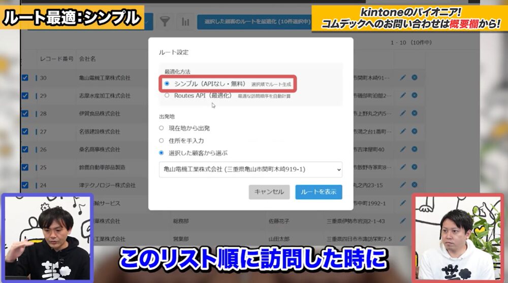 kintone×GoogleAPI 配送・訪問ルートを最適化