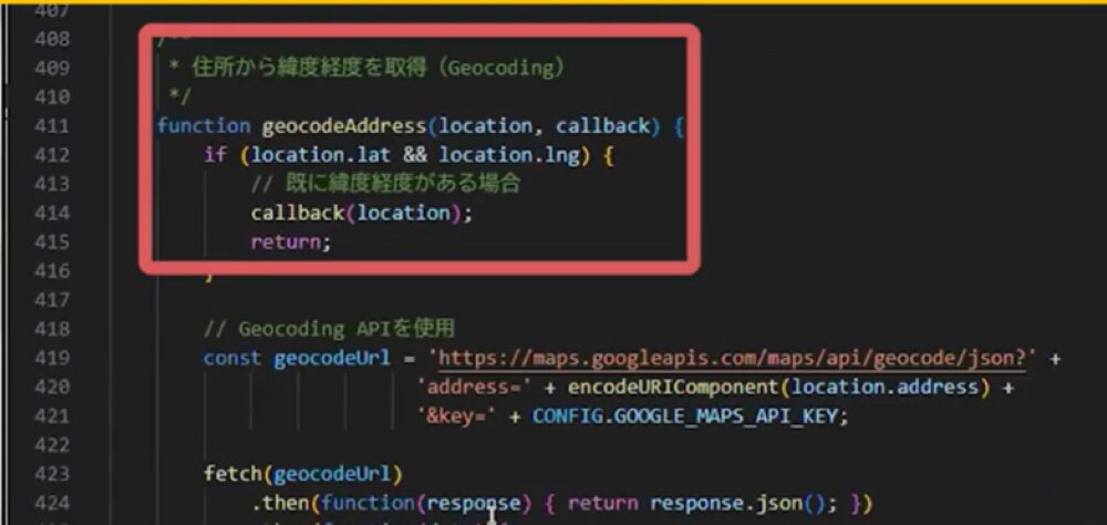 Google Routes APIでは、住所をテキストのまま検索してもルートをうまく生成できないため、住所の情報をテキストから緯度・経度の形式に変換して検索する必要があります。