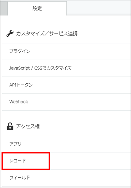 ②「設定」タブの「アクセス権」にある「レコード」をクリック