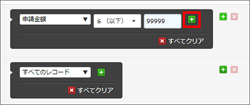 - 「申請金額」は「≧(以上)」「100,000」と入力