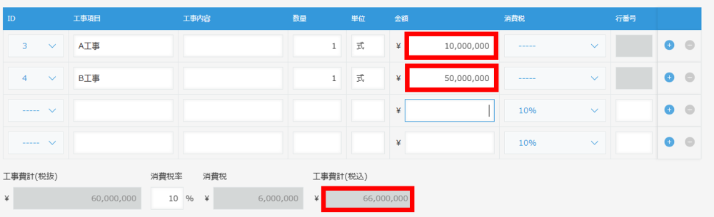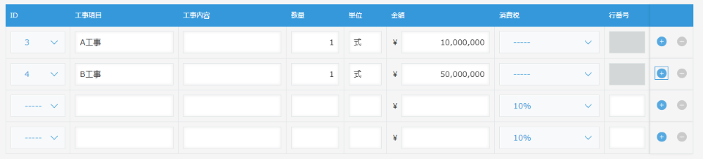 明細の件数が案件によって変わっても、行を追加・削除するだけで対応できます。