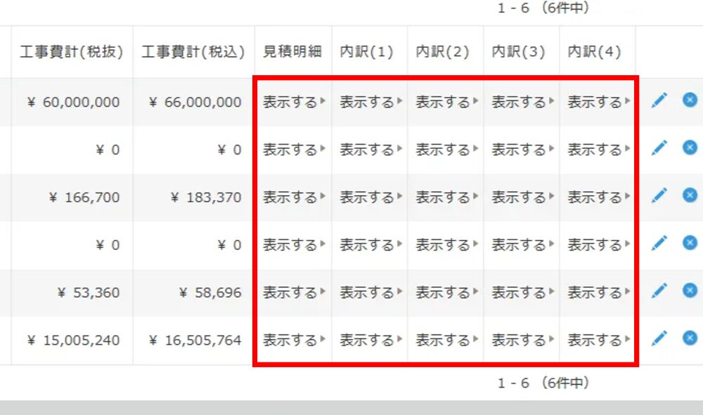 標準機能では、レコードの詳細画面を開いて「表示する」をクリックしないと明細を確認できない仕様になっています。