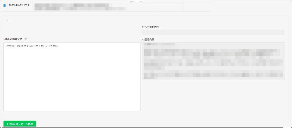 担当者は、出力内容をチェックし、必要に応じて加筆・修正を行って、この画面からLINEへ返信することが可能です。