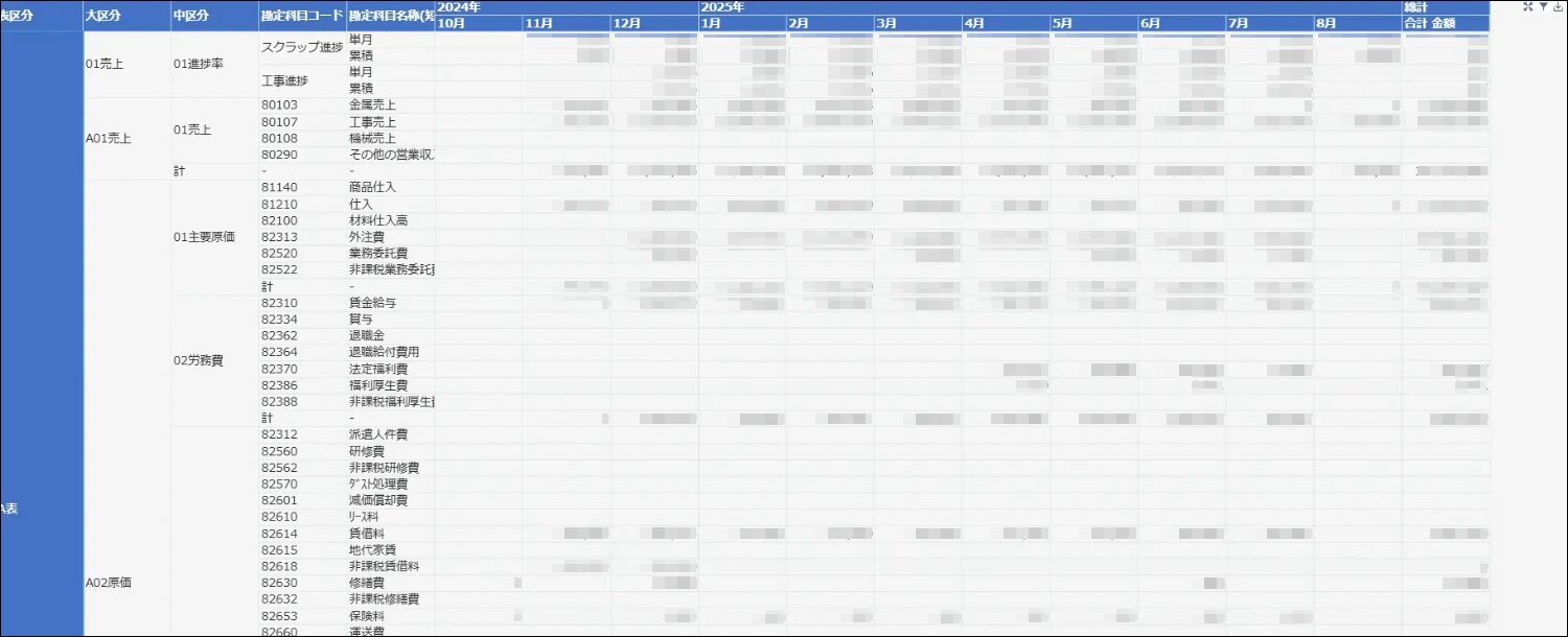 krewDashboardで科目別集計をピボットテーブル化し、一画面ですべての重要情報を把握できるようにしました。