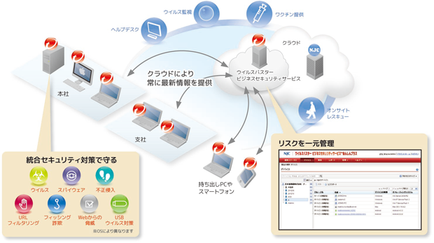 クラウド版の特徴である自動アップデート機能により、全端末が常に最新版で運用されていることが管理でき、ウイルス感染の危険から未然にパソコンを守ってくれています。